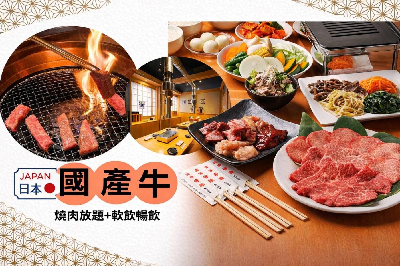 早餐:飯店內早餐 午餐:日本國產牛+豬肉+雞肉燒烤吃到飽+軟性飲料無限暢飲 晚餐:為方便逛街,敬請自理