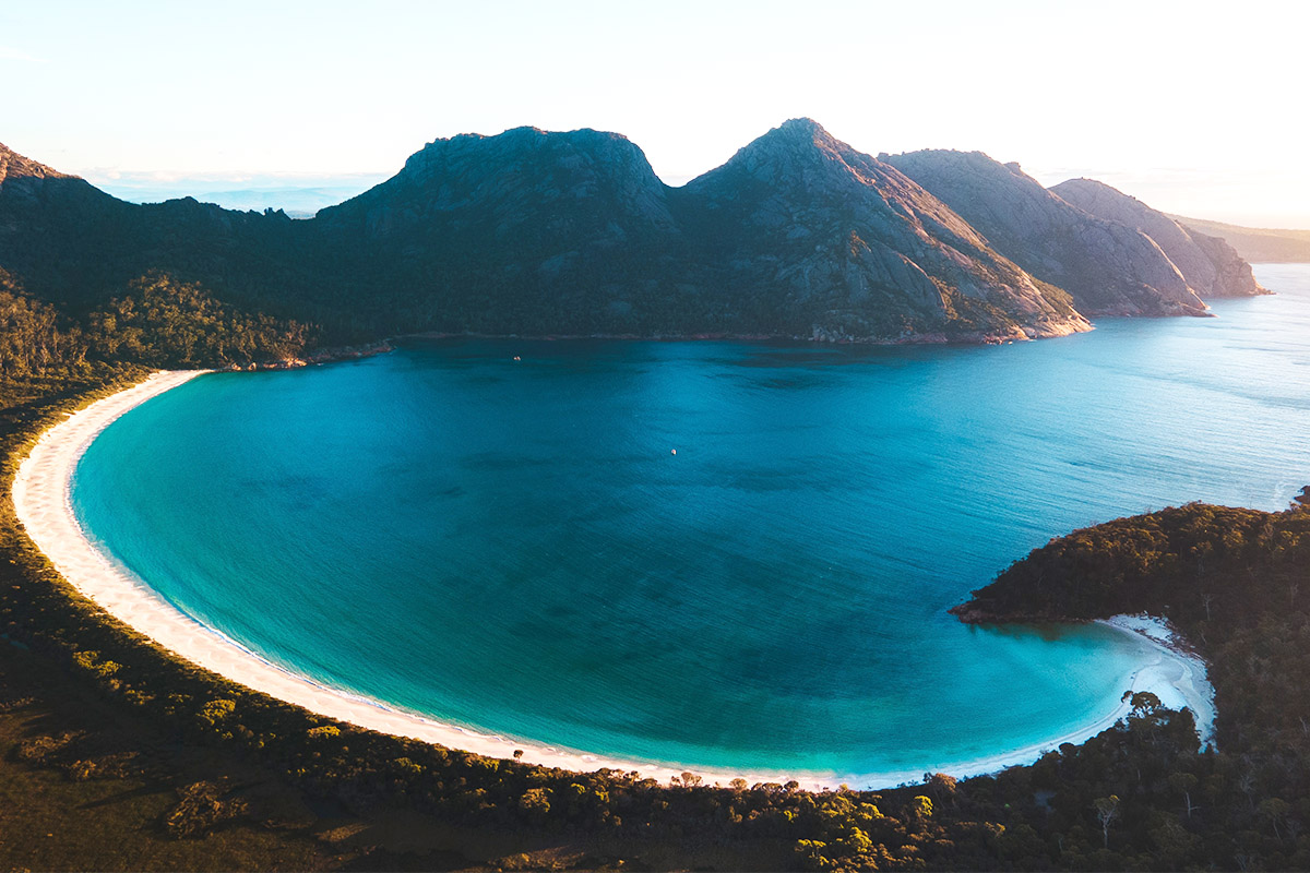 酒杯灣(Wineglass Bay)位於澳洲塔斯馬尼亞東岸的菲欣納國家公園(Freycinet National Park),跟中部的搖籃山並列兩大塔斯馬尼亞觀光勝地,搖籃山有名的是鴿子湖與高山健行,酒杯灣則是形狀特殊、名列CNN與澳洲網站Traveller全球十大沙灘。在這裡,我們將爬上制高點,從上方俯瞰整個酒杯灣的美景。